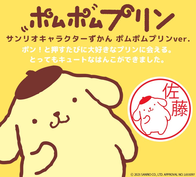 「サンリオキャラクターずかん(ポムポムプリンver.)」は、ハローキティ、マイメロディ、シナモロールに続くサンリオキャラクターずかんの第4弾として登場したオーダーメイドのはんこ。かわいいポムポムプリンのイラストに、好きな名前を入れて自分だけのハンコをつくることができます。今回はこれまで販売していたクイックC9タイプから「CAMILAタイプ」に、さらにおしゃれに可愛くなってリニューアルしました。