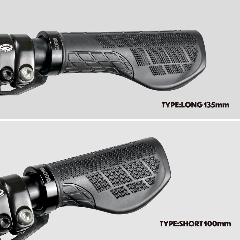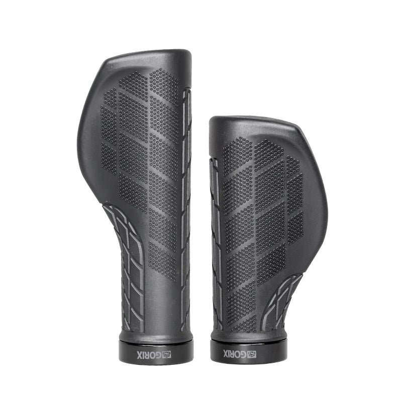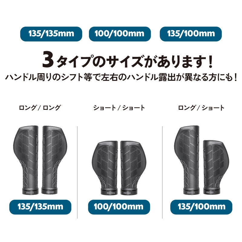 高いグリップ力と人間工学に基づくエルゴノミック形状で、短めの自転車ショートグリップをお探しの方にもおすすめです。ロングサイズとショートサイズの左右違いの組み合わせもあります。