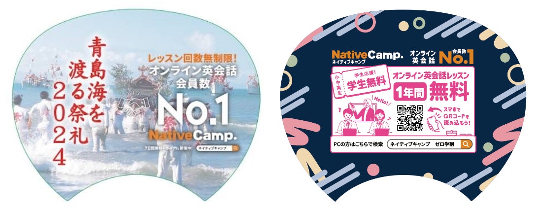 お祭りに合わせてオリジナルのうちわを作成し、来場者に配布しました。うちわには地域の小中高生が無料で英語学習を始められる「ゼロ学割」に関する情報を記載し、多くの学生に英語学習の機会を提供しました。