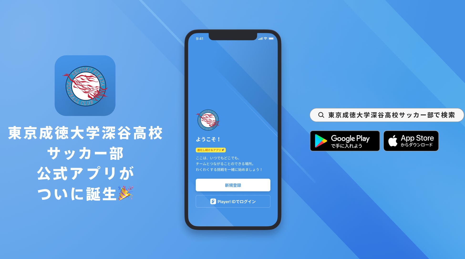AppStoreもしくはGooglePlayで「東京成徳大学深谷高校サッカー部」と検索!