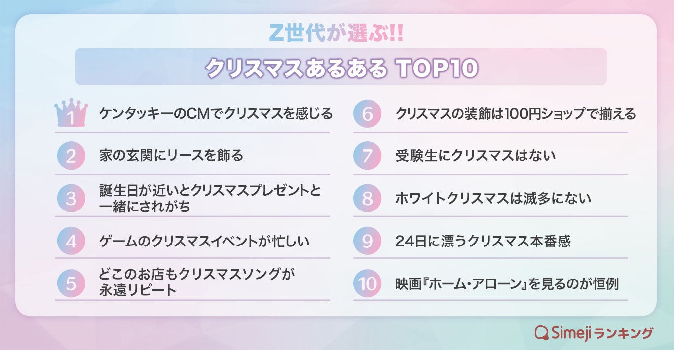 【Simejiランキング】Z世代が選ぶ!!「クリスマスあるあるTOP10」