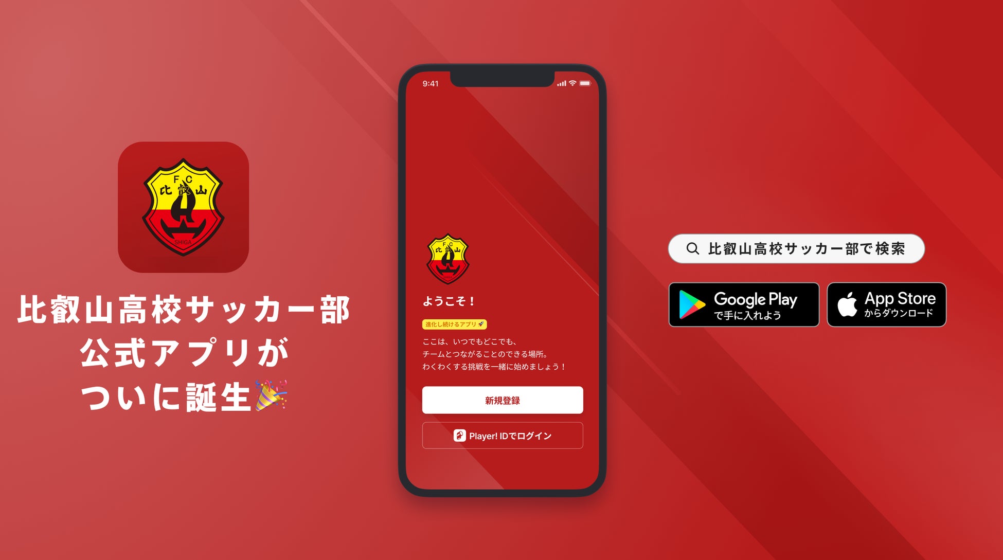 AppStoreもしくはGooglePlayで「比叡山高校サッカー部」と検索!