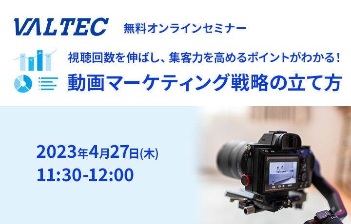 株式会社バルテック(本社:東京都新宿区)は、2023年4月27日(木)11:30∼12:00にオンライン形式で開催、参加費用は無料。成果の出る動画マーケティングを行いたい方必見のセミナーです。