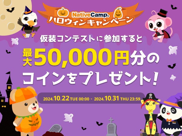 【会員数No.1】ネイティブキャンプ 最大50,000円分のコインがもらえる「ハロウィン仮装コンテスト」開催!さらにハロウィン限定デイリーニュースキャンペーンも開催中