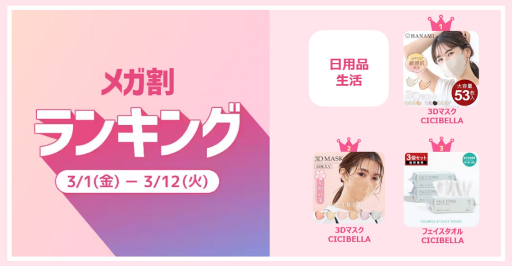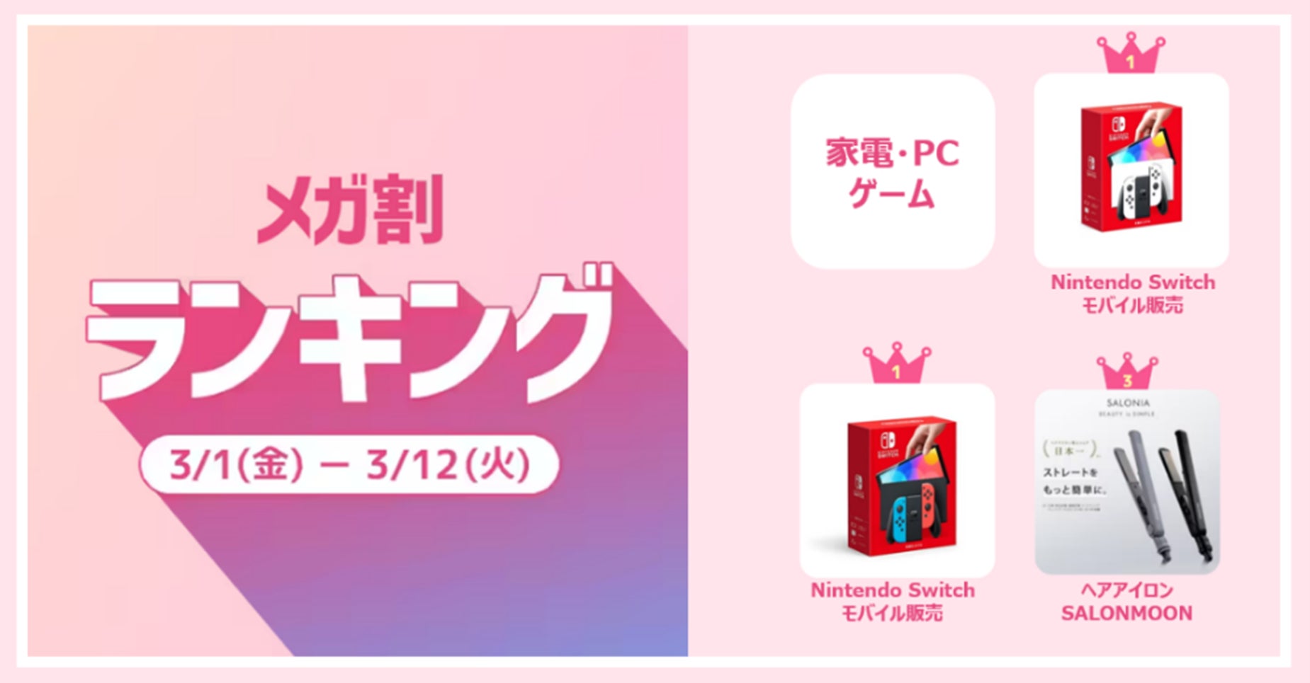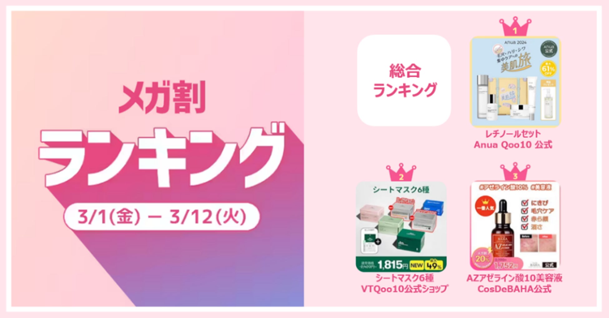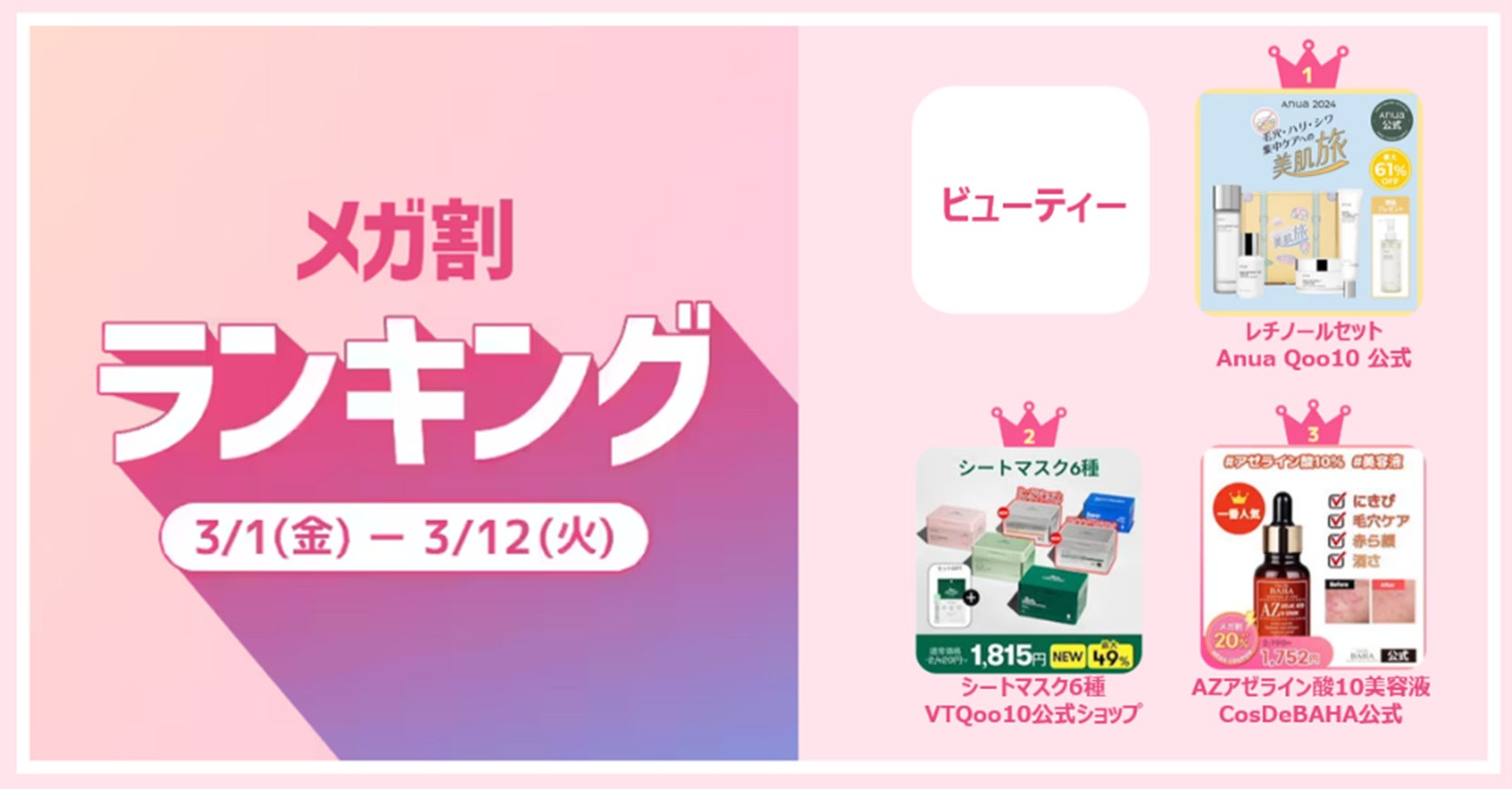 ■メガ割ランキング(期間:2024年3月1日~3月12日)