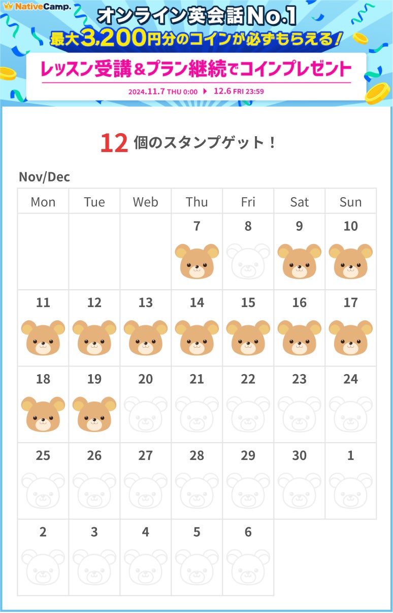 キャンペーン 詳細:https://nativecamp.net/campaign/lesson_coin_gift