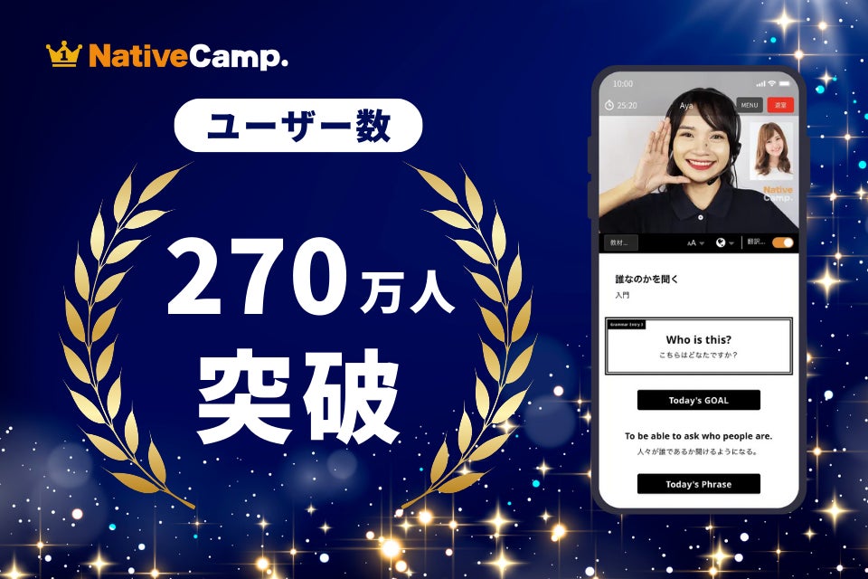 ネイティブスピーカーと回数無制限のオンライン英会話サービス「ネイティブキャンプ英会話」を展開する株式会社ネイティブキャンプ(東京都渋谷区 代表取締役:谷川国洋)はこの度、オンライン英会話業界で最大規模となるユーザー数270万人を達成いたしました。