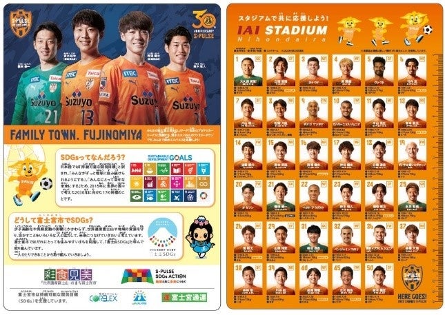 表面に「SDGs/富士山SDGs」について、裏面にエスパルスの選手一覧を掲載。