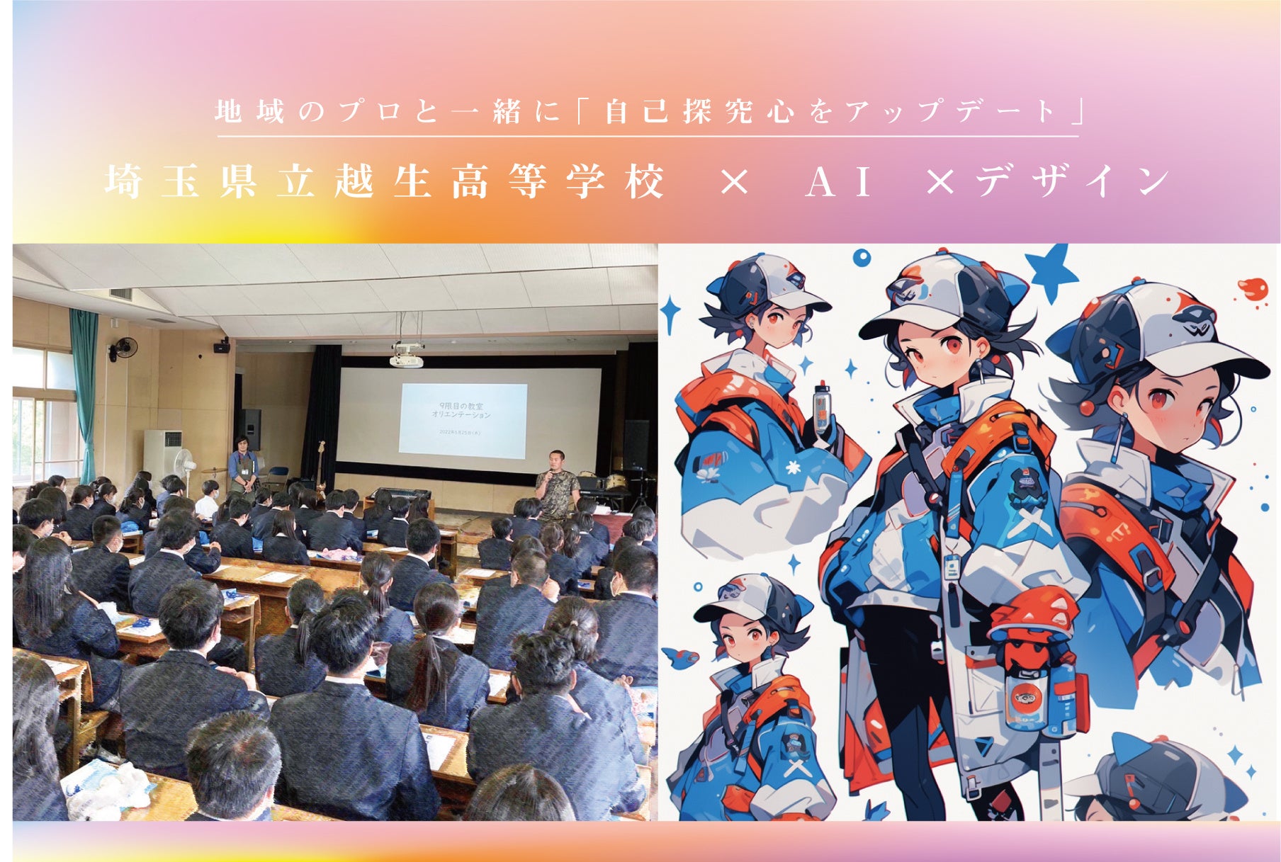埼玉県立越生高等学校のプログラム「総合的な探究の時間」にて、温泉道場のクリエイティブディレクターが「Aiで作るデザイン」の授業を担当