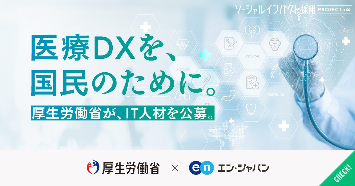 厚生労働省、エン・ジャパンで「医療DX」を担うIT人材を公募!