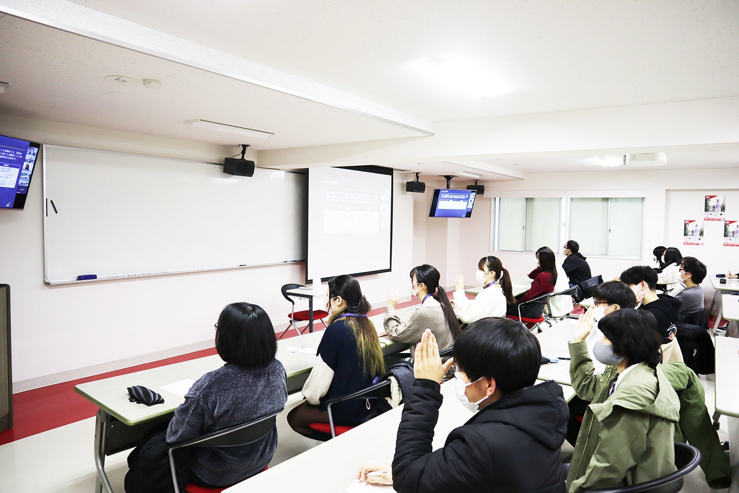 講演後の質疑応答の際には学生から「日米の業務の違い」「日本とアメリカ、それぞれの地域で働くメリットは?」「学生時代、資格取得に向けてのモチベーションはどうやって維持していたか?」「勉強と実務の違いや、実際に実務を通して面白かったことは?」などの声が上がり、大変有意義な時間を過ごしました。