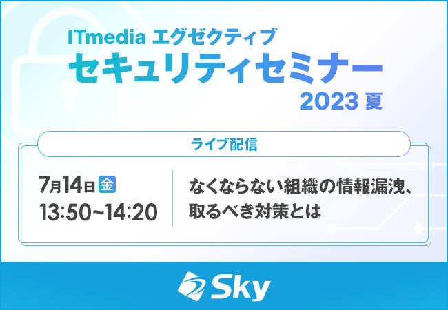 ライブ配信セミナー「ITmedia エグゼクティブ セキュリティセミナー2023 夏」にて、『なくならない組織の情報漏洩、取るべき対策とは』をテーマに講演を実施いたします