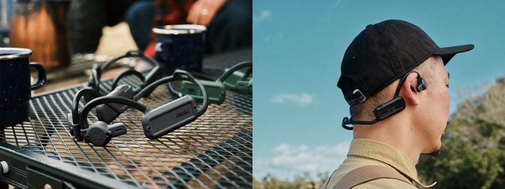 自然の音や会話も一緒に楽しめるオープンイヤー型のウェアラブルスピーカーです。デバイス同士でシェアができるため周りを気にせず複数人の仲間と音楽を楽しむことができる製品です。