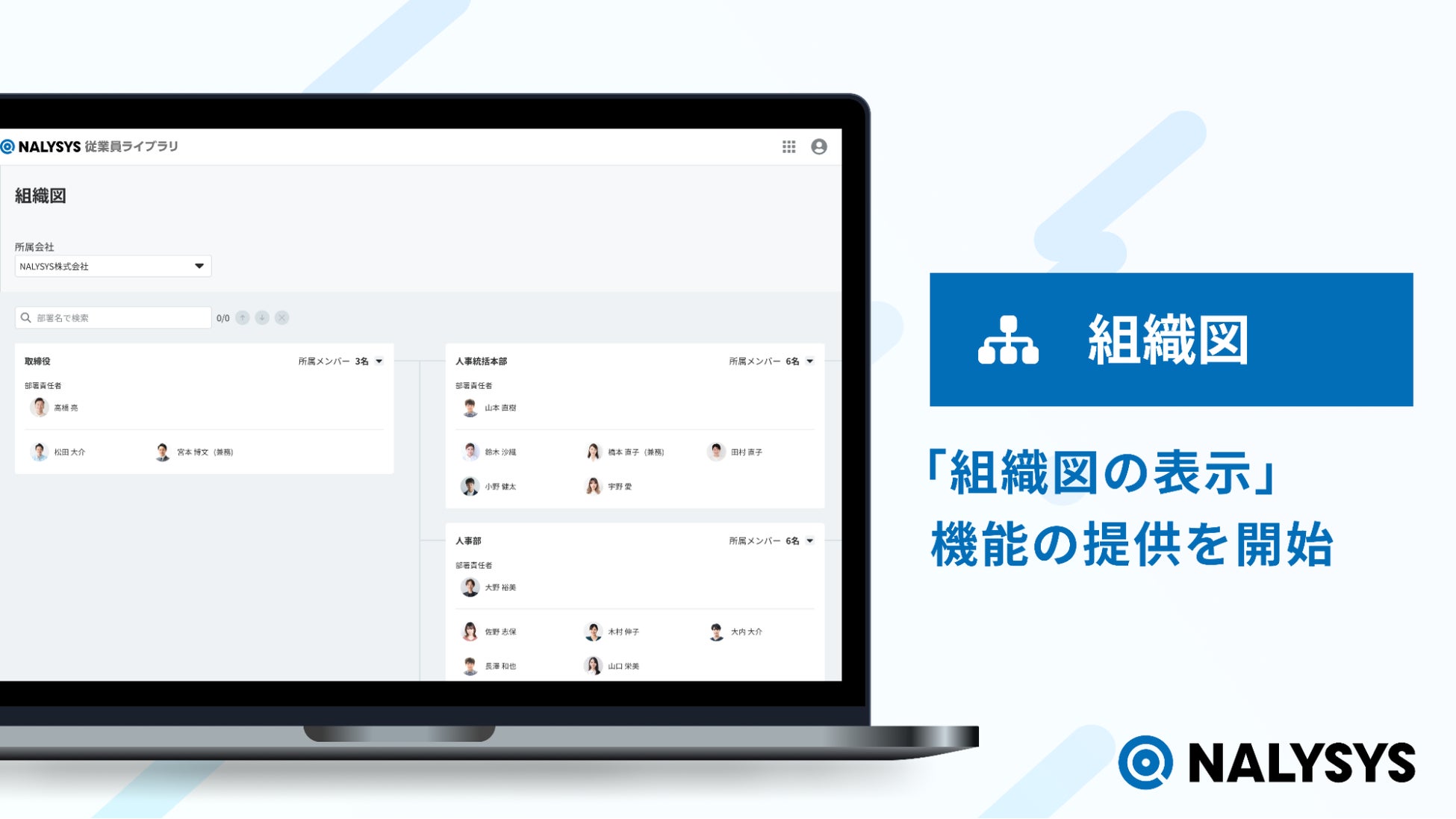 今後NALYSYSでは、人事担当者の更なる業務効率化を実現するため、「組織図の表示」機能を拡張した新機能の開発も予定しています。