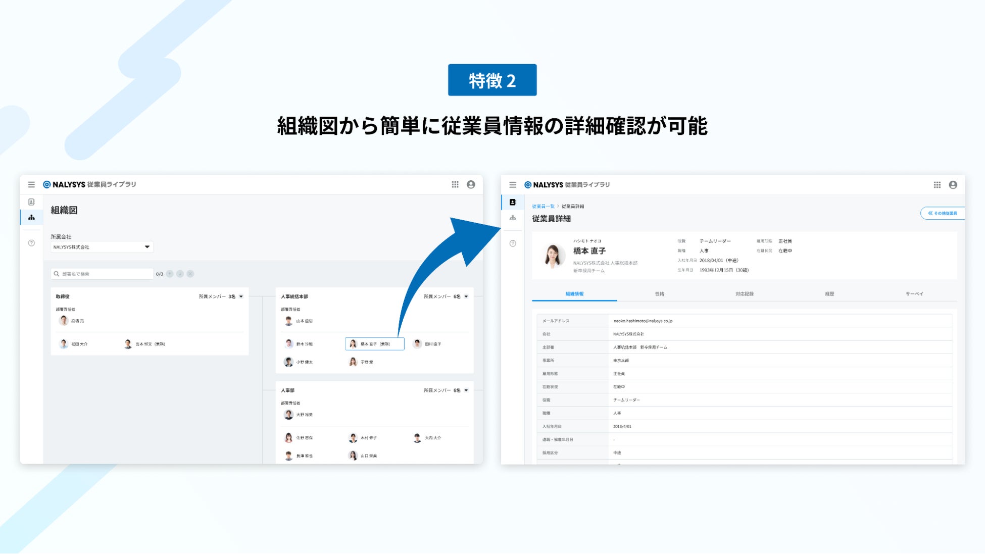 特徴2:組織図から簡単に従業員情報の詳細確認が可能