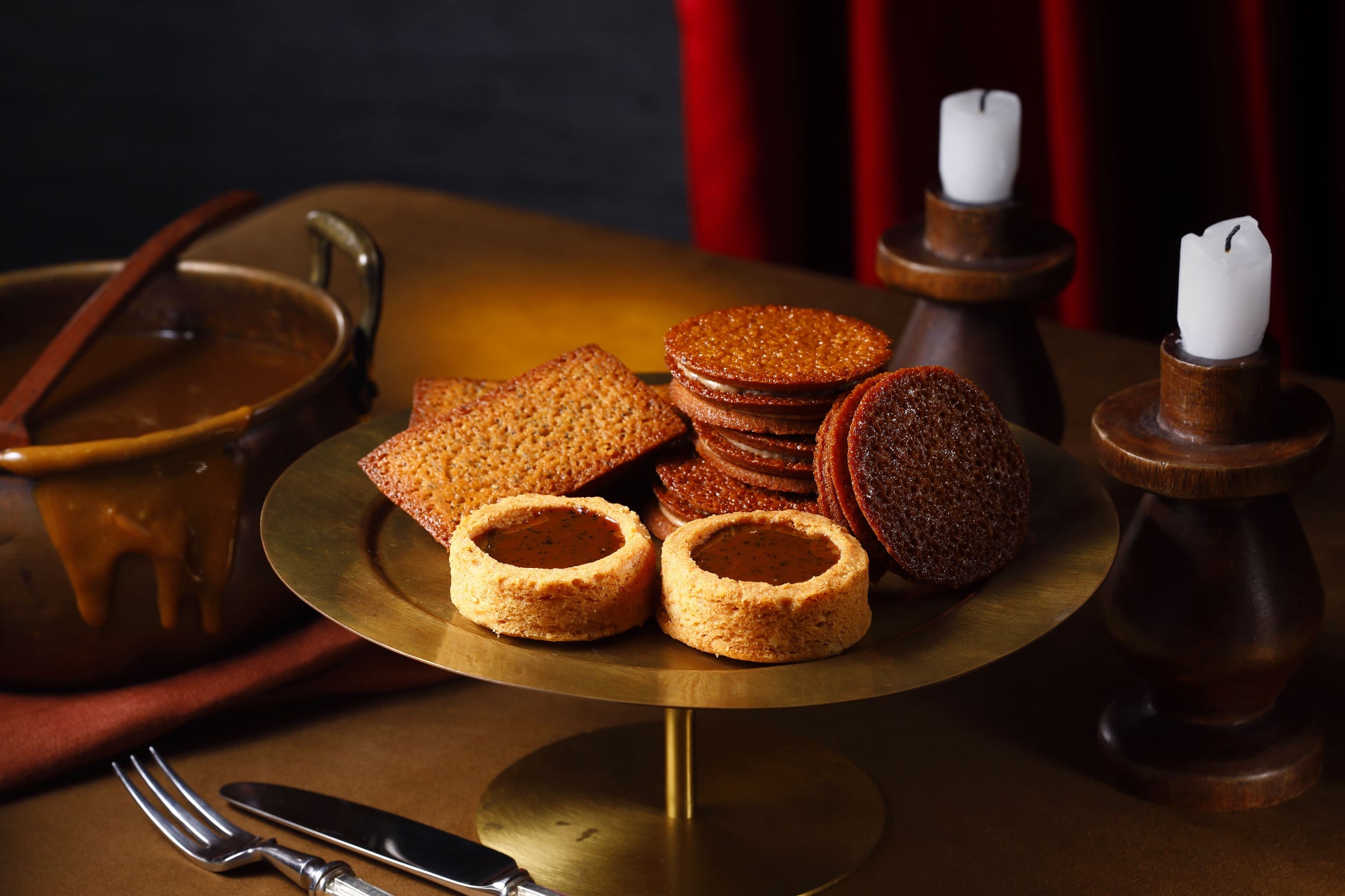 さくっ、ほろっとしたガレットの中に、紅茶の茶葉を隠し味に加えてコトコト煮詰めたキャラメルを流し込み、丁寧に仕上げたバター香るキャラメルガレットです。まるでキャラメル鍋のような形のガレットはキャラメルオバケ自慢の逸品です。