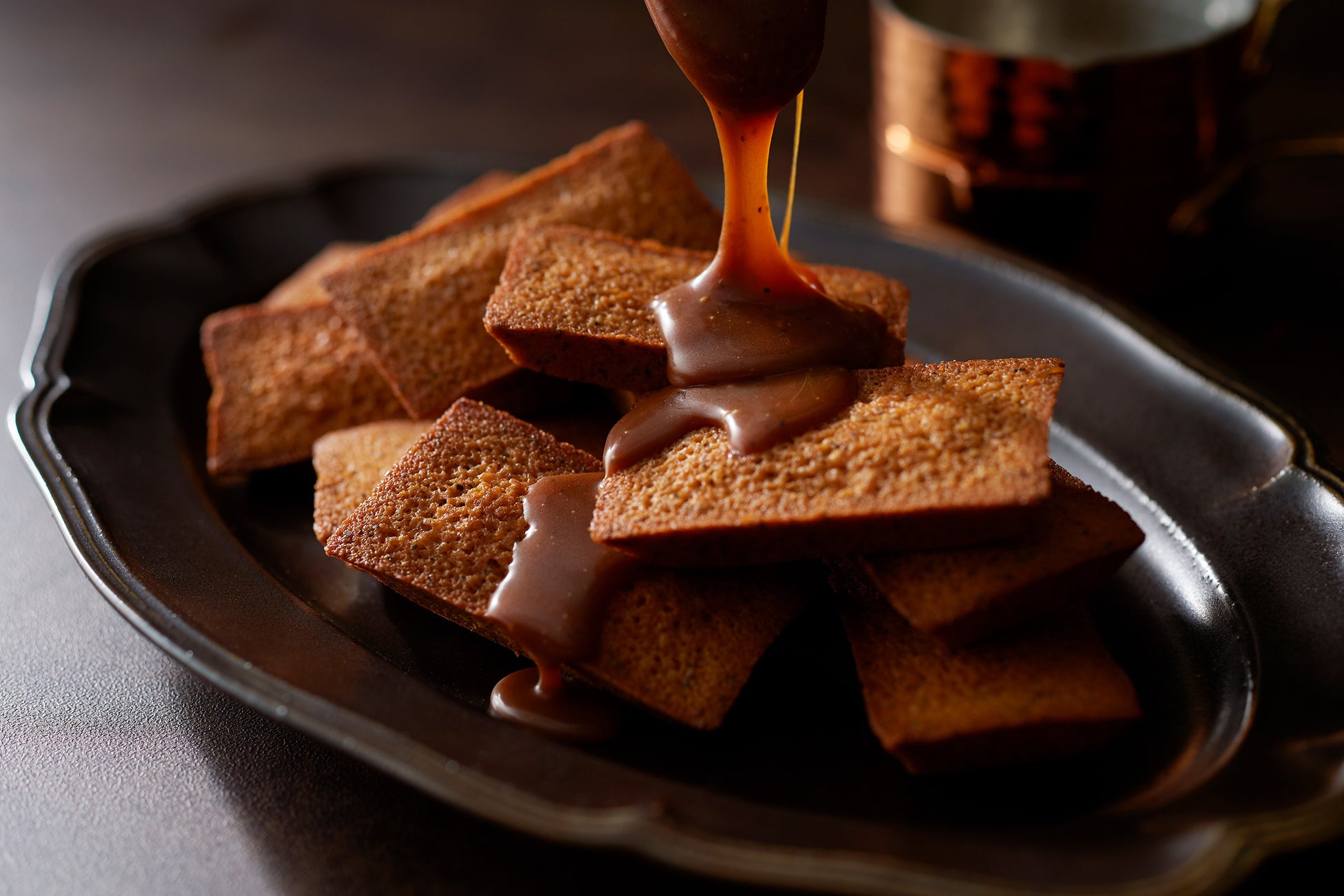 発酵バターを使用したフィナンシェに香り高いアールグレー紅茶とコトコト煮込んで作ったキャラメルキャンディのパウダーを混ぜ込んで焼き上げました。
