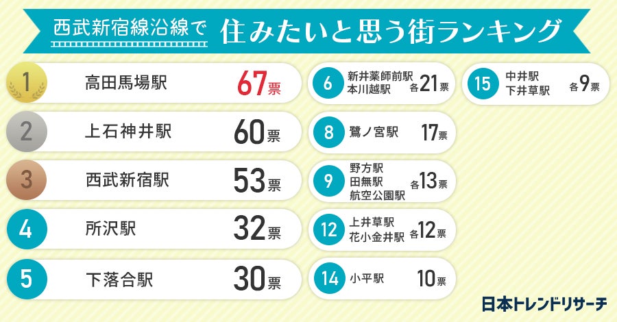 【東京・埼玉在住の男女450人に聞いた】西武新宿線沿線で住みたいと思う街ランキング!