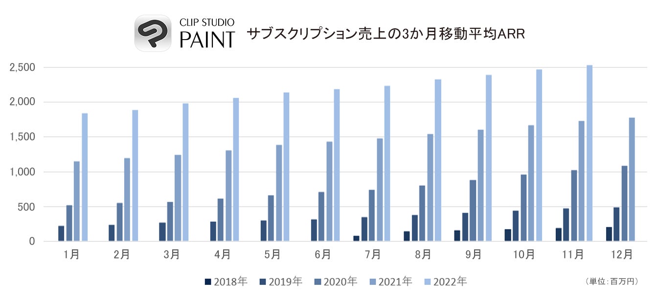 *1「CLIP STUDIO PAINT」が提供されている全てのプラットホームの総合計。iPhone版、iPad版、Galaxy版を除いた先行無償期間の契約および、アクティベーションコード(量販店等で販売する一意のコードのみが記載されているカード等サブスクリプションモデルのお支払に利用できる認証コードや、株主優待で利用されたアクティベーションコード)での契約を含む。