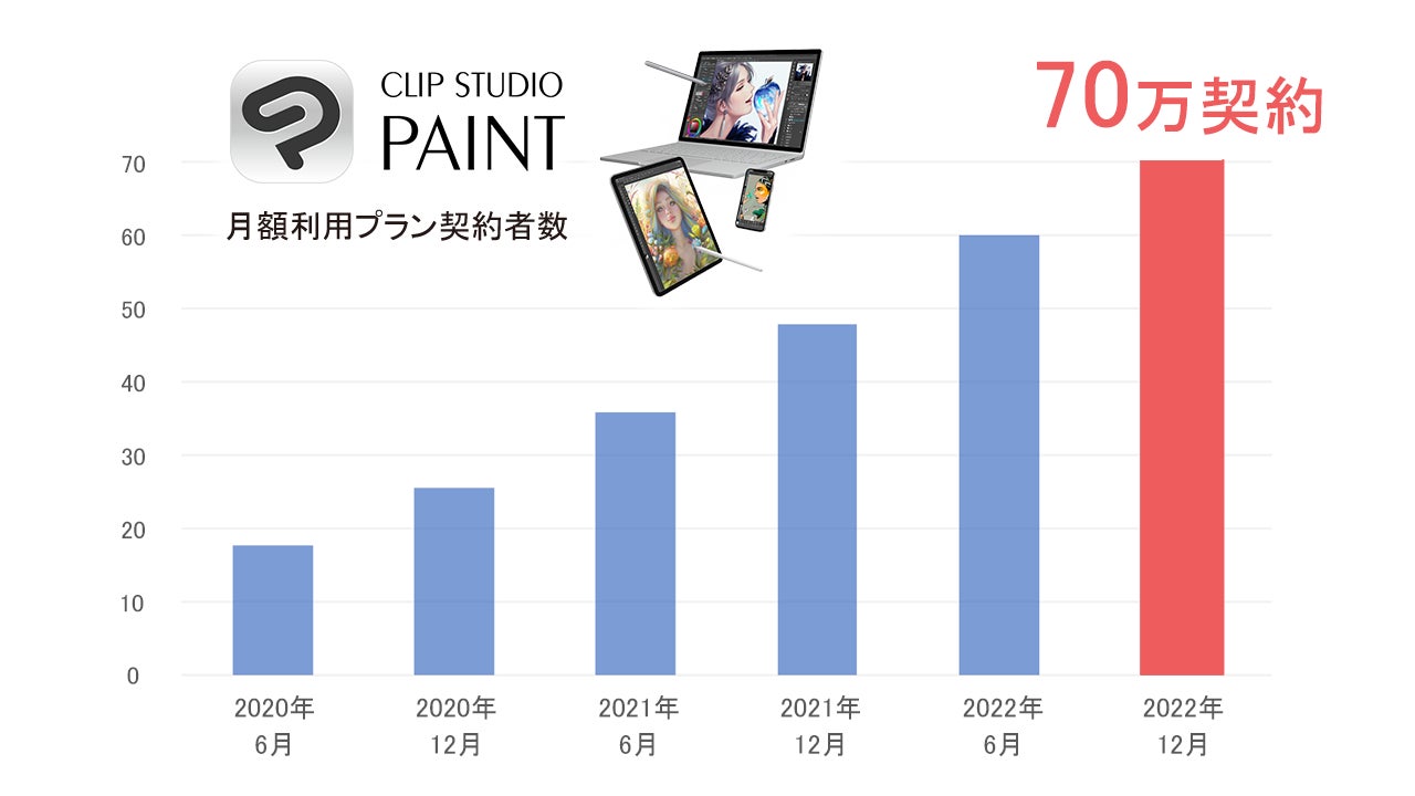 イラスト・マンガ・Webtoon・アニメーション制作アプリ「CLIP STUDIO PAINT」の全世界におけるサブスクリプションモデルの契約数が70万契約に