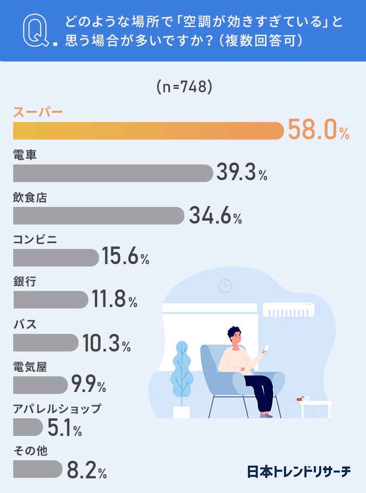 日本トレンドリサーチ・空調が効きすぎている場所に関する調査