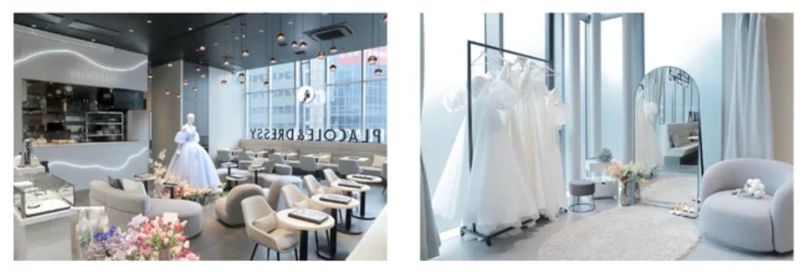 フォロワー数200万人を超えるSNSアカウント「PLACOLE & DRESSY」がプロデュースする「DRESSY CAFE」-きらめく魔法にかかる空間- は、日常で気軽に利用できる「煌めく魔法の場所」という新しい選択肢を増やしたい。ウェディングドレスは特別な時だけのものではなく、もっと身近に、もっと気軽に、体感できる空間となっています。紅茶やスイーツを楽しんでいただきながら、ウェディングドレスの魔法にかかり癒される空間を演出。すべての女の子へ毎月テーマに合わせたウェディングドレスのディスプレイをお届けいたします。