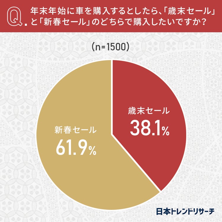 61.9%の方が、年末年始に車を買うなら「新春セールで購入したい」と回答し、歳末セールよりも多い結果になりました。