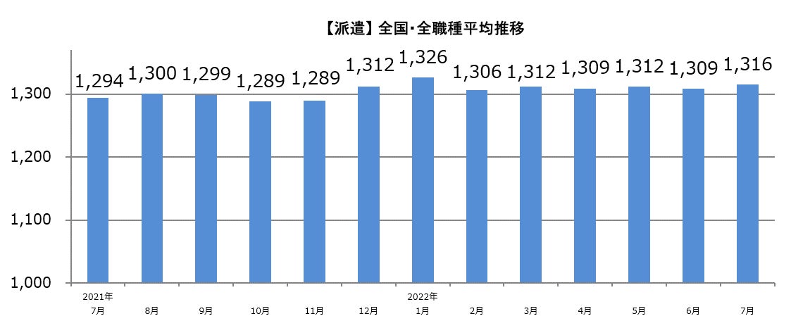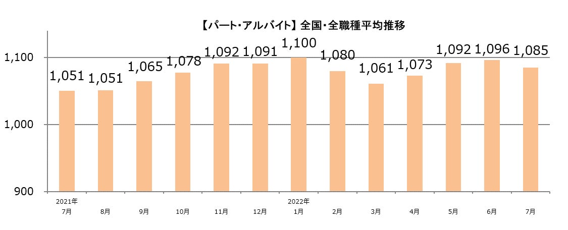 【2022年7月 主婦求人の平均時給】パート・アルバイト:『1,085円』、派遣:『1,316円』
