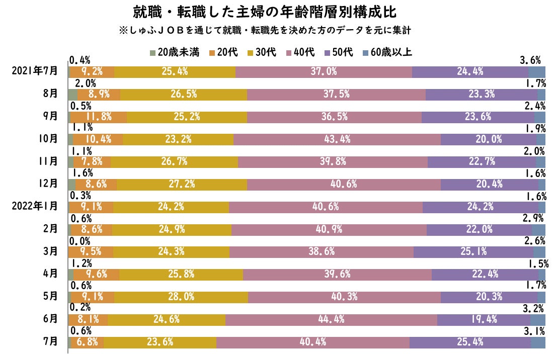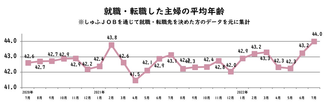 【転職主婦の平均年齢調査 2022年7月】44.0歳(前年同月比+0.9歳)