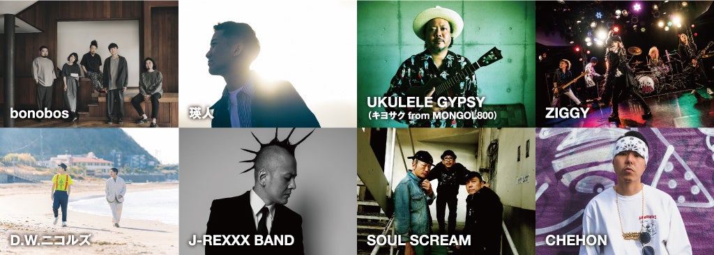 ZIGGY / UKULELE GYPSY(キヨサクfrom MONGOL800)/ 瑛人 / CHEHON / SOUL SCREAM / J-REXXX BAND / D.W.ニコルズ / ICHI-LOW / NARI