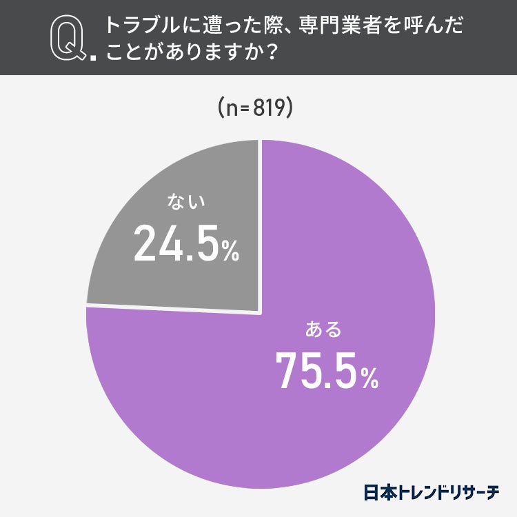 75.5%の方が、専門業者を呼んだことが「ある」と回答しました。