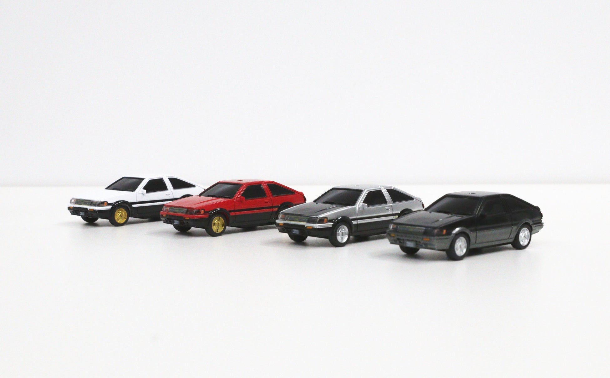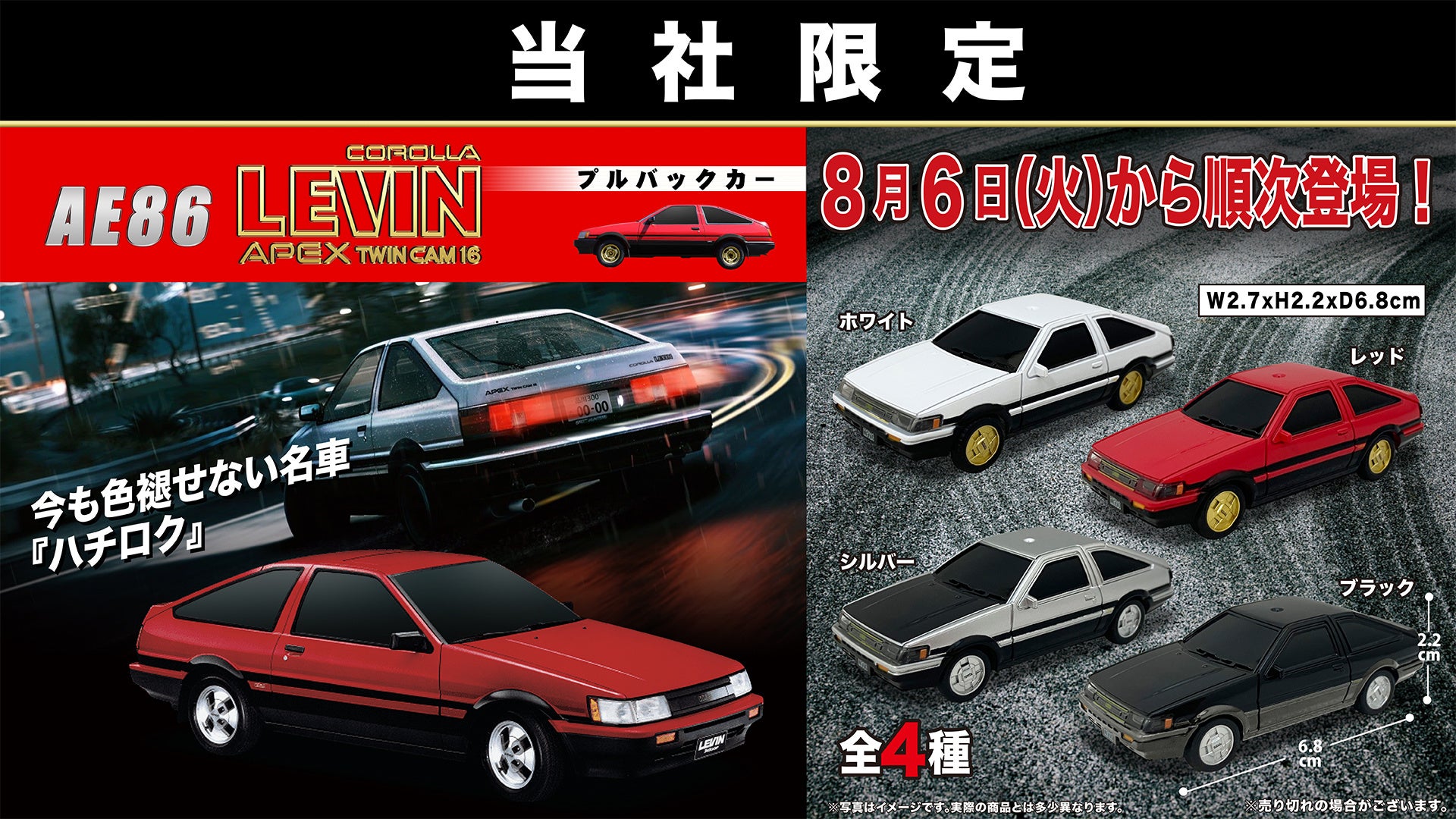 軽快な走りで人気を博し、「ハチロク」と呼ばれ親しまれている「カローラレビンAE86」が手のひらサイズのプルバックカ―になってカプセルトイに登場。車体色は純正カラー「レッド」、「ホワイト」、「ブラック」に、カスタムカラー「シルバー」の全4色を展開いたします。