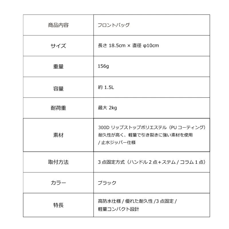 通勤・通学からアウトドアライドまで幅広く活躍する、頼れるフロントバッグです。