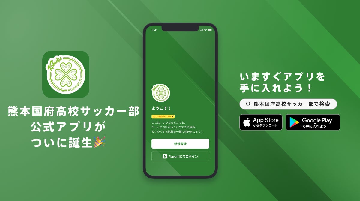 AppStoreもしくはGooglePlayで「熊本国府高校サッカー部」と検索!