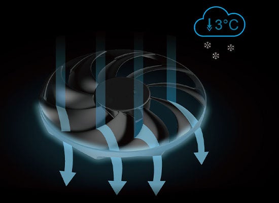 エアフローに優れたファンや、放熱性の高いヒートシンクにより、パフォーマンスを発揮する際もしっかりグラフィックボードを冷却し、動作を安定させます。
