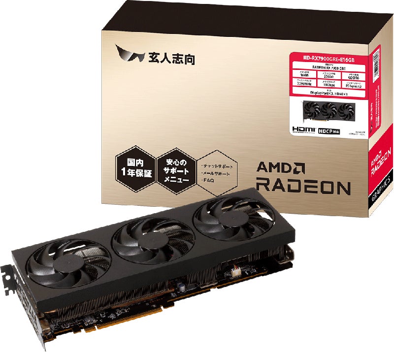 玄人志向から、Radeon RX 7900 GRE 高冷却3連ファン搭載グラフィックボード『RD-RX7900GRE-E16GB』発売