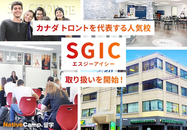 ネイティブスピーカーと回数無制限のオンライン英会話サービス「ネイティブキャンプ英会話」を展開する株式会社ネイティブキャンプ(東京都渋谷区 代表取締役: 谷川国洋)は海外留学エージェントサービス「ネイティブキャンプ留学」において、カナダ・トロントを代表する人気校「SGIC」の取り扱いを開始したことをお知らせいたします。