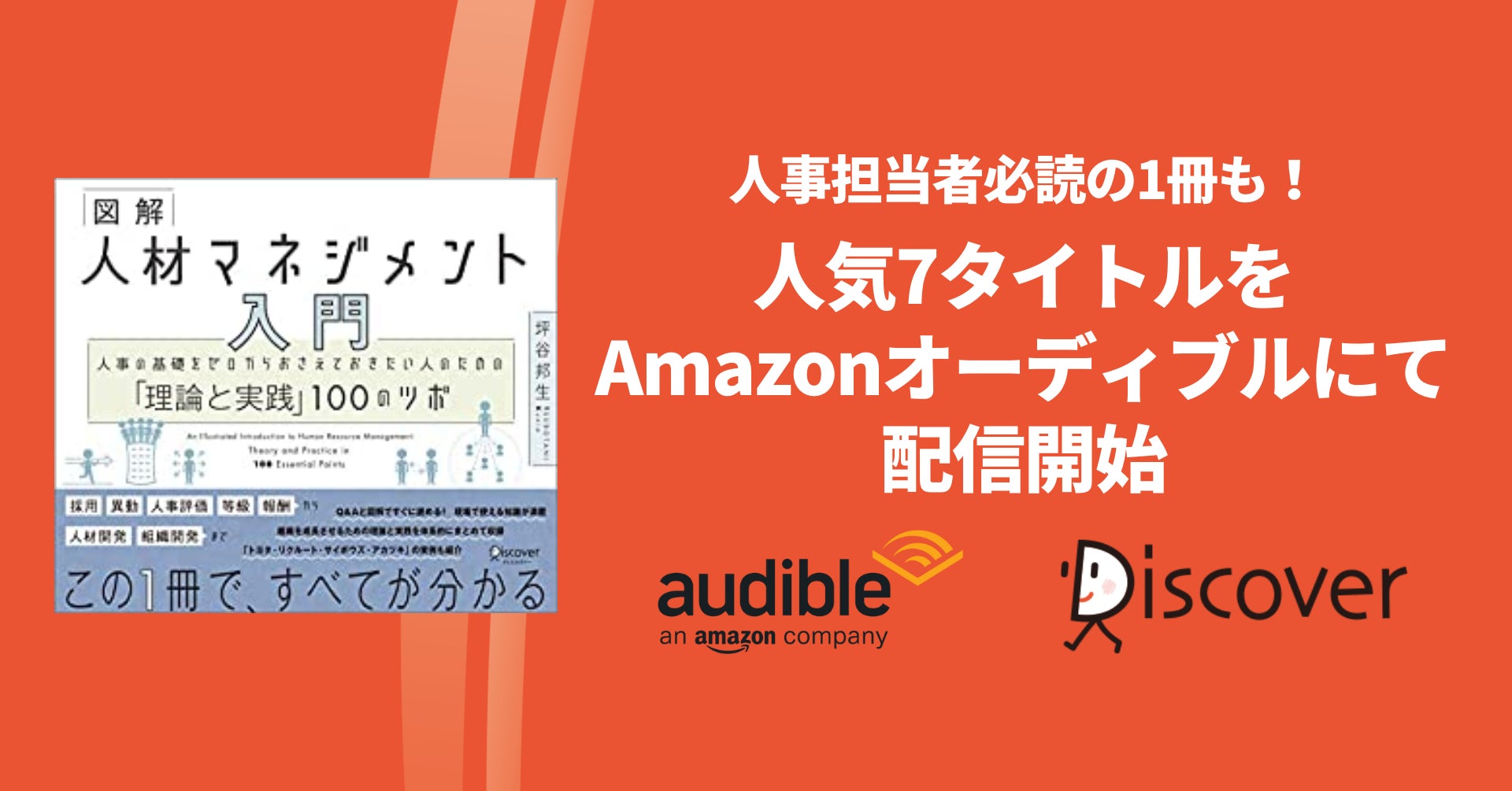 株式会社ディスカヴァー・トゥエンティワン(本社:東京都千代田区、取締役社長:谷口奈緒美)と世界最大級のオーディオブック及び音声コンテンツ制作・配信サービスであるAmazonオーディブル(以下、オーディブル)は、2022年1月に『図解 人材マネジメント 入門 人事の基礎をゼロからおさえておきたい人のための「理論と実践」100のツボ』他6点のオーディオブックを、オーディブルにて発売しました。