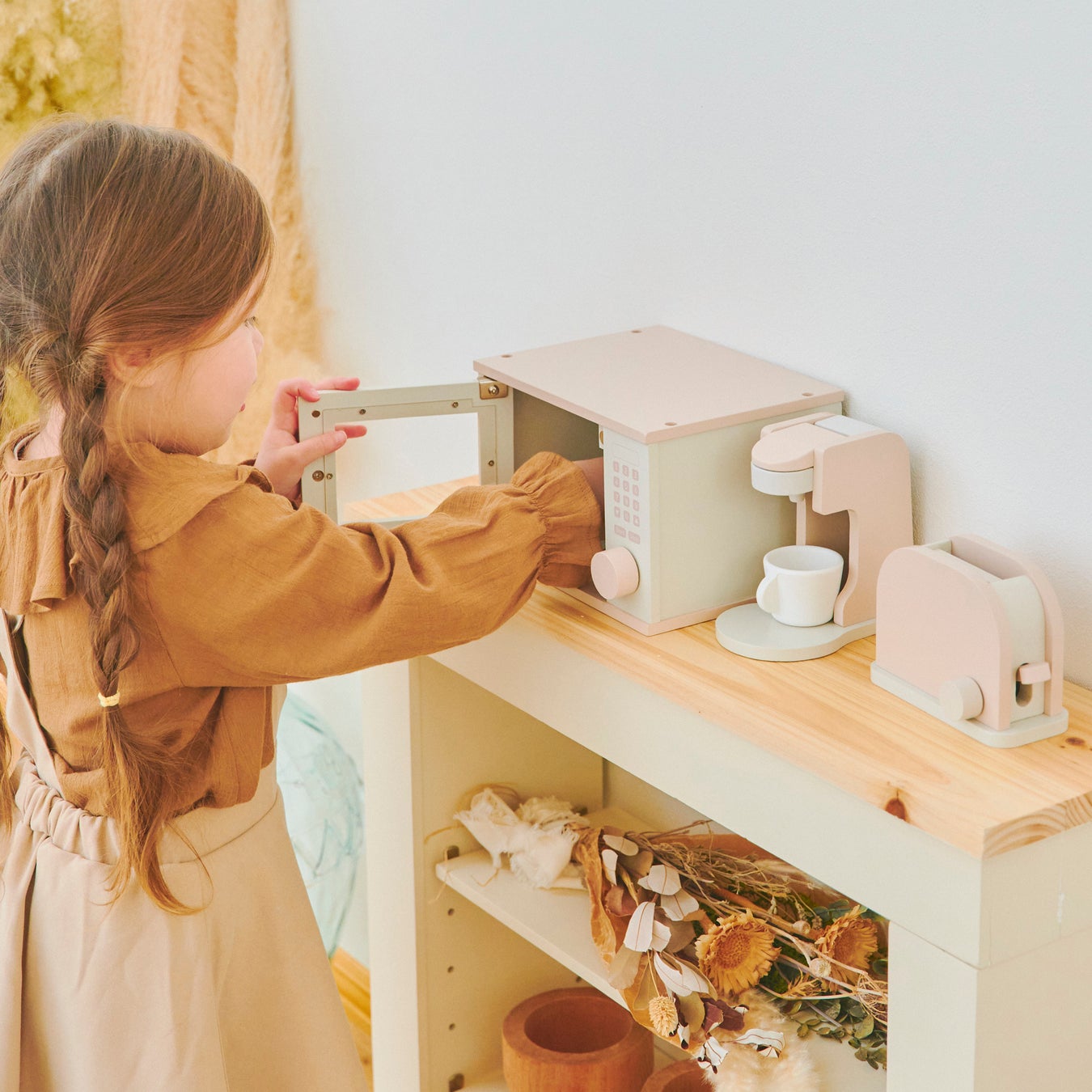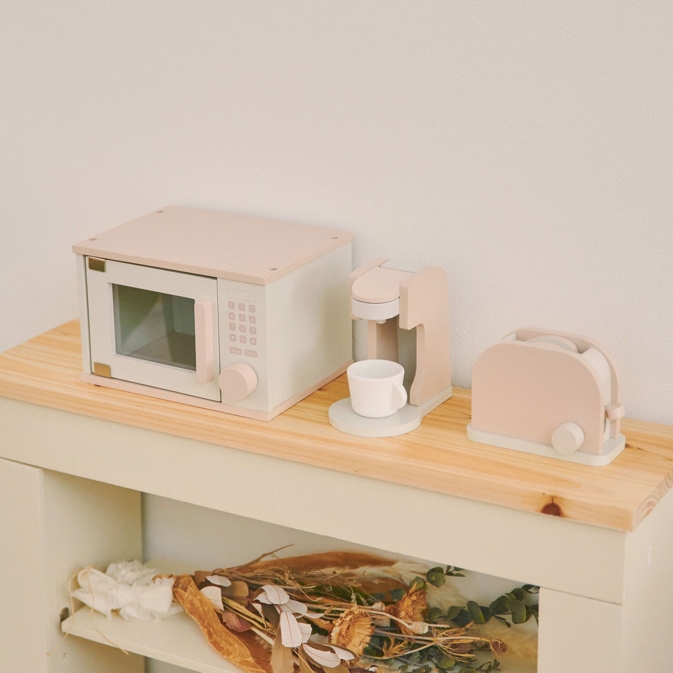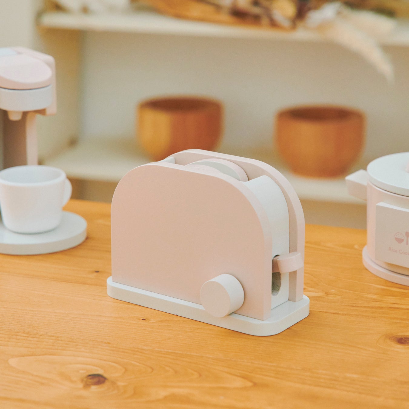 トースターと食パンが2枚セットになっていて横のレバーを下に押すと食パンが出てくる仕組みになっていて焼けた再現が出来て楽しい!