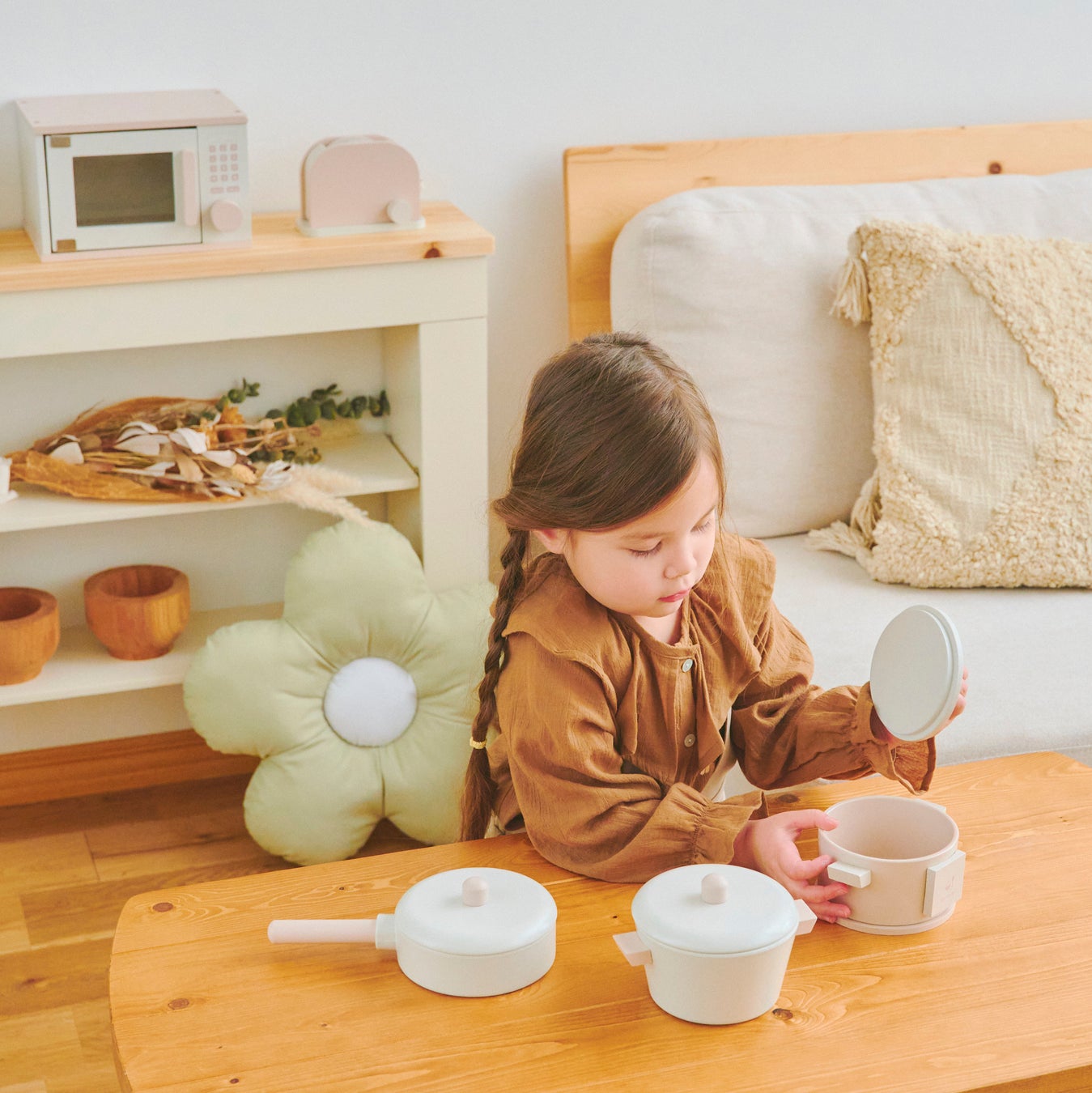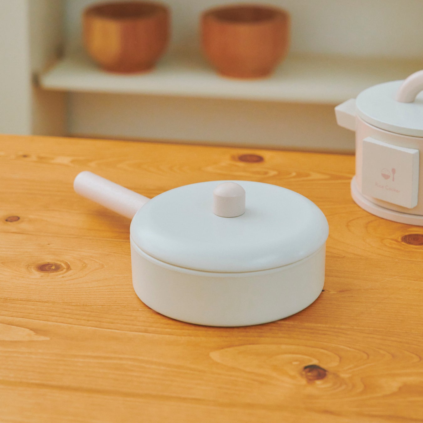 蓋付きのフライパンなので遊びながら蓋を使って蒸す、煮る、焼くなどの料理の概念も理解できます。