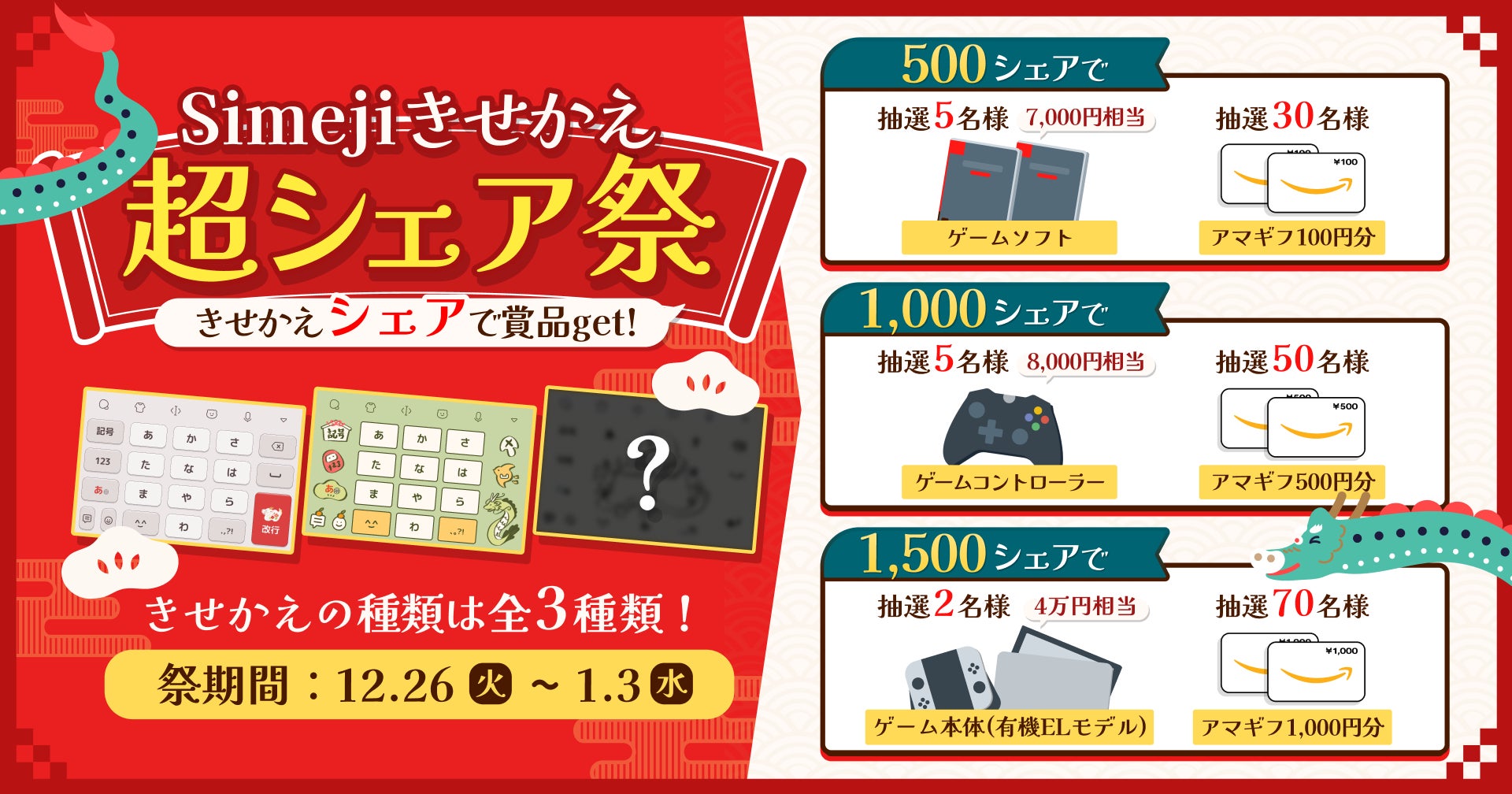 Z世代に大人気!キーボードアプリ「Simeji」、オリジナル年末年始きせかえをリリース!プレゼントキャンペーンも同時開催!