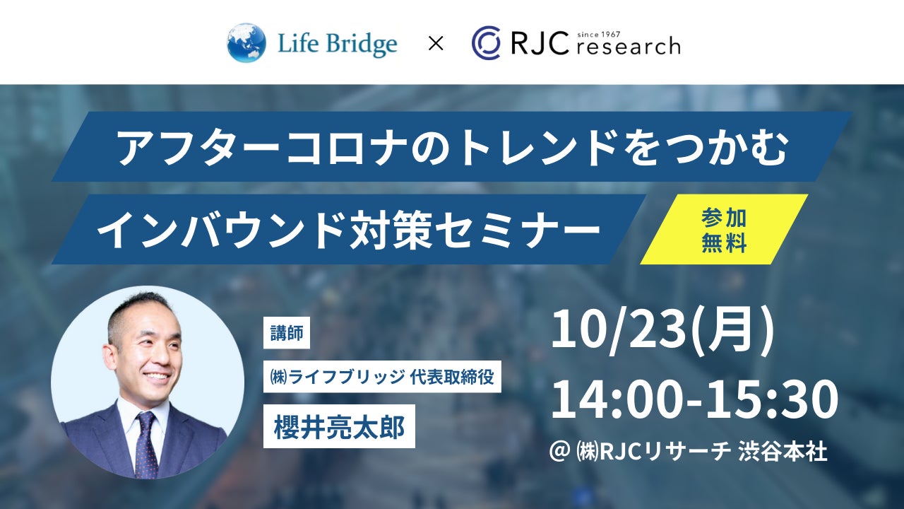 2023年10月23日(月)14時開催、 アフターコロナのトレンドをつかむインバウンド対策無料セミナー