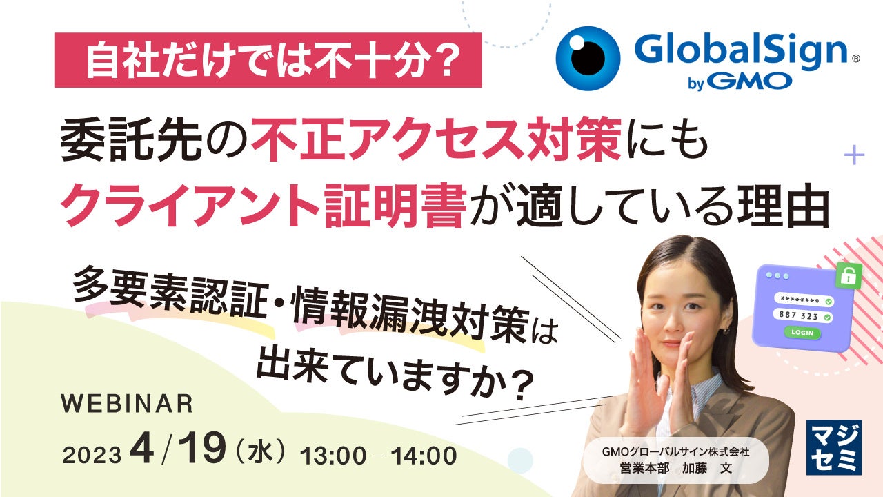 マジセミ株式会社は委託先の不正アクセス対策にクライアント証明書が適している理由というテーマのウェビナーを開催します。