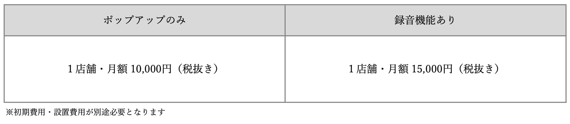 販売現場の課題解決に役立つ機能に特化したシンプルな作りとなっており、利用しやすい価格でのご提供が可能となっています。一店舗につき何回線でも下記月額費用は変わりません。