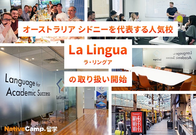ネイティブスピーカーと回数無制限のオンライン英会話サービス「ネイティブキャンプ英会話」を展開する株式会社ネイティブキャンプ(東京都渋谷区 代表取締役: 谷川国洋)は海外留学エージェントサービス「ネイティブキャンプ留学」において、オーストラリア・シドニーを代表する人気校「La Lingua」の取り扱いを開始したことをお知らせいたします。