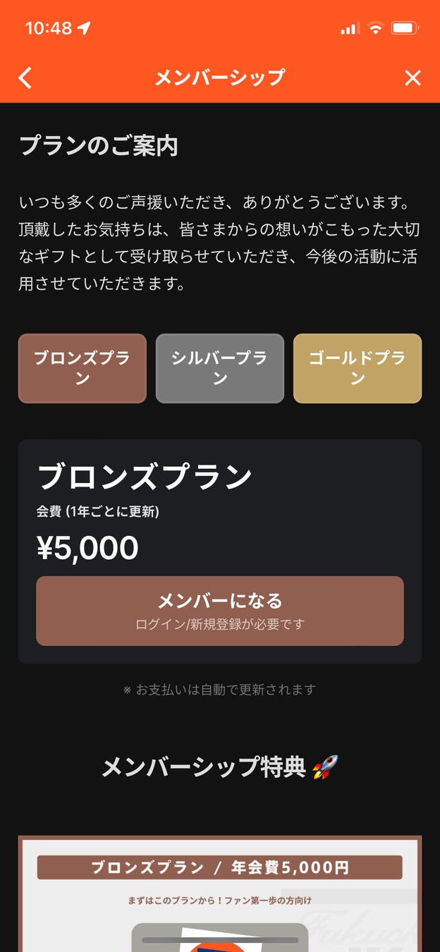 メンバーシップ機能からファンクラブ会員になって頂くと、チームから特別なグッズをお届けします!