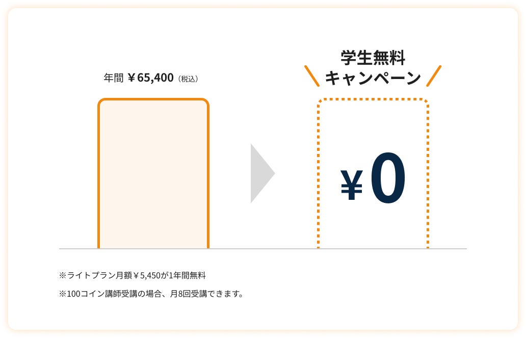 ・内容 : 月8回までのオンライン英会話レッスンが受講できる「ライトプラン(月額5,450円)」を1年間無料で提供