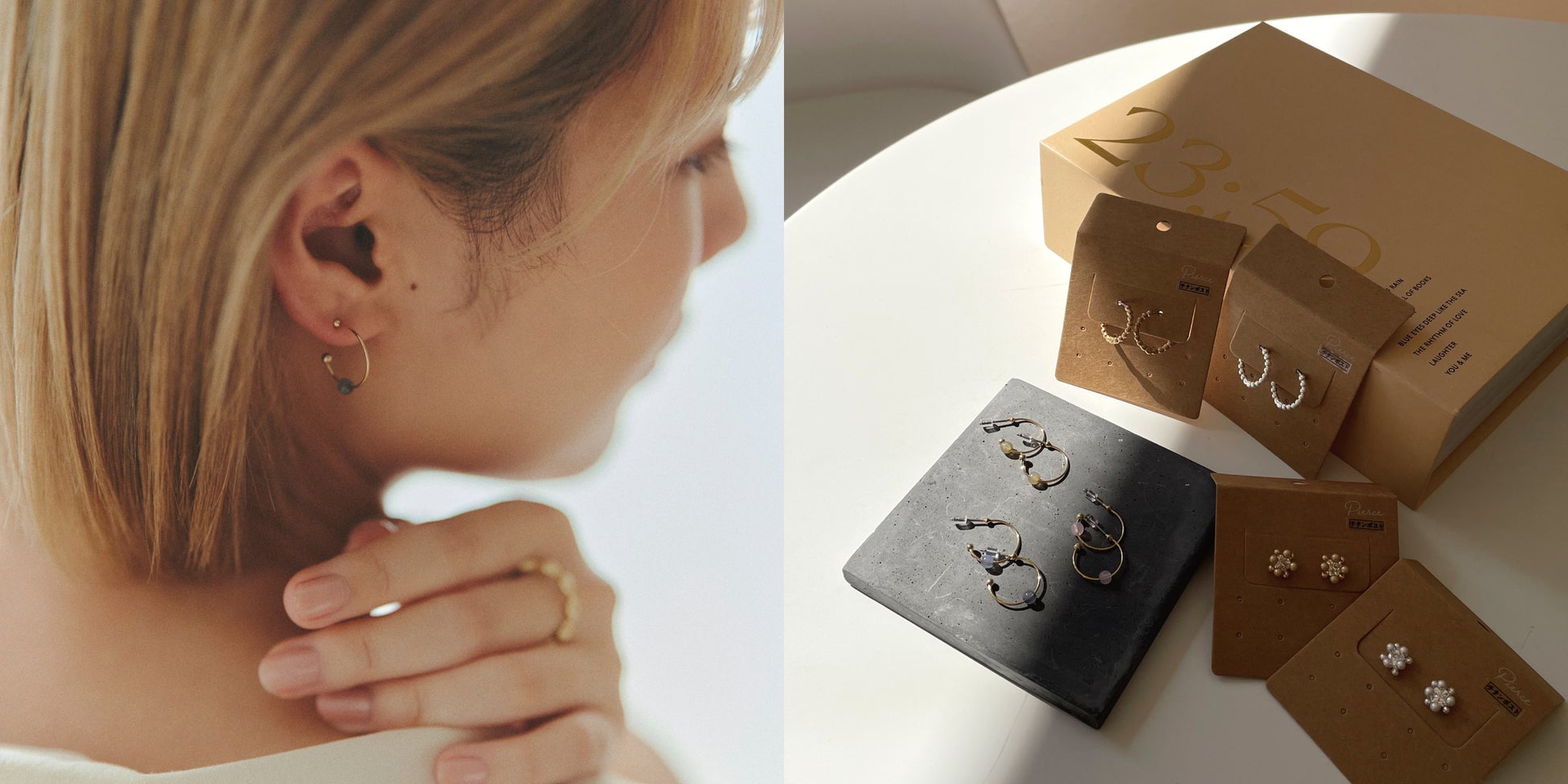 素材:【画像右】ピアス/真鍮 リング(各)/金属