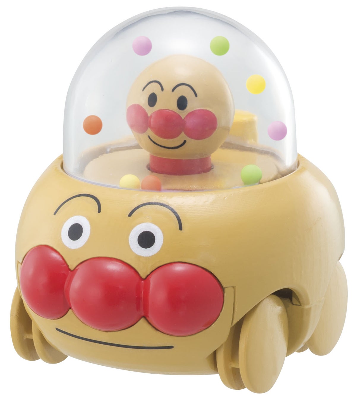 手で転がすとクリアのドームの中でカラフルなビーズがとびはねる!キャラクターがくるくる回る!可愛い乗り物シリーズの「てころがしポップンカー」が新登場です。