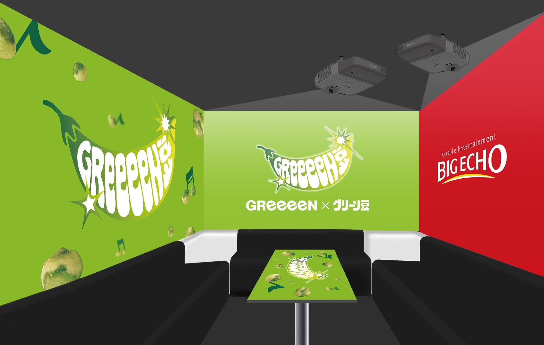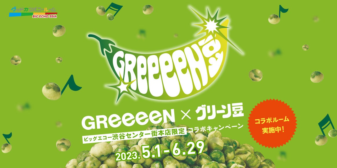ビッグエコーがショールームに ビッグエコー35周年記念 【グッドカンパニールームプロジェクト】始動!春日井製菓「グリーン豆コラボルーム」を渋谷センター街本店に5月1日より期間限定オープン!